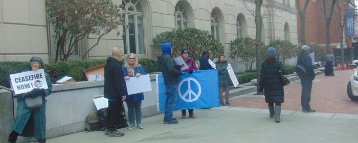Video, starting with crowd lined up and continuing with part of speech by Melissa Berkey-Girard of Community Peacemaker Teams.
