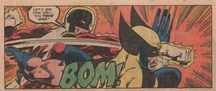 Here’s Guardian of Alpha Flight throwing his weight into a punch to Wolverine’s jaw.
