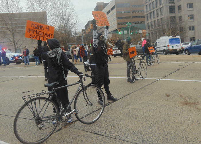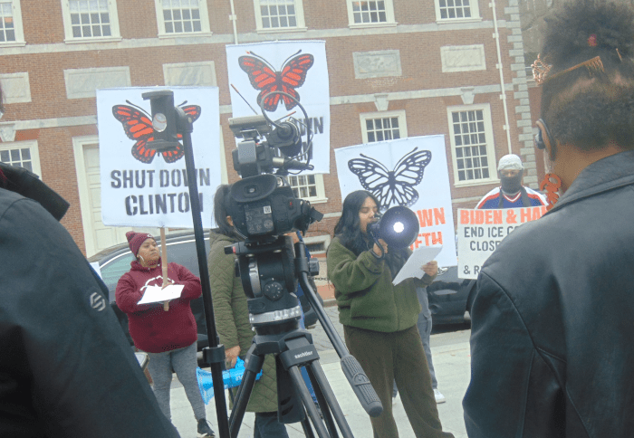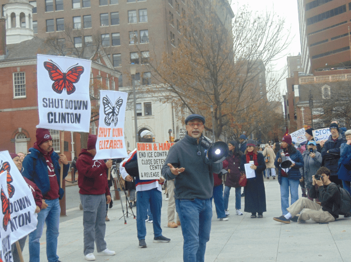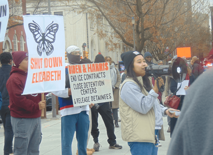 About a hundred immigration activists and supporters met in the shadow of the Liberty Bell on Wednesday to demand that President Joe Biden use his remaining time in office to take apart the nation’s deportation mechanisms.