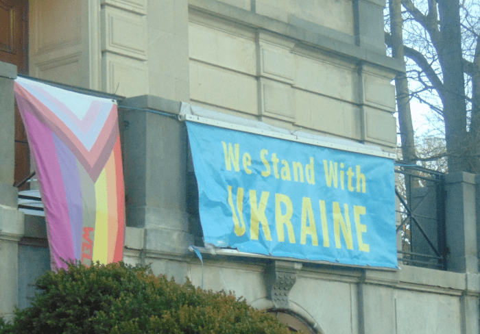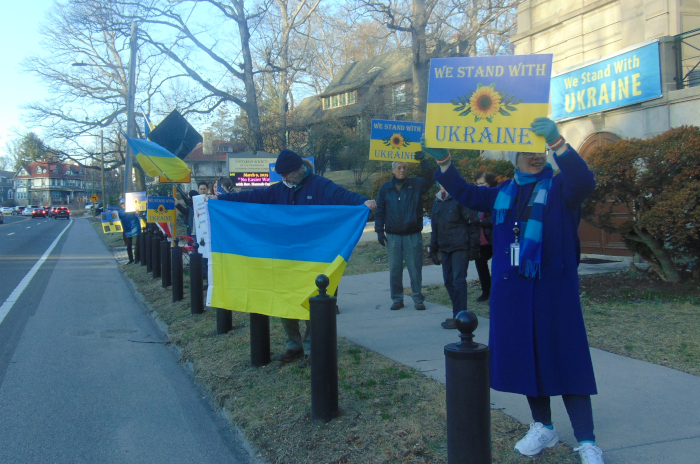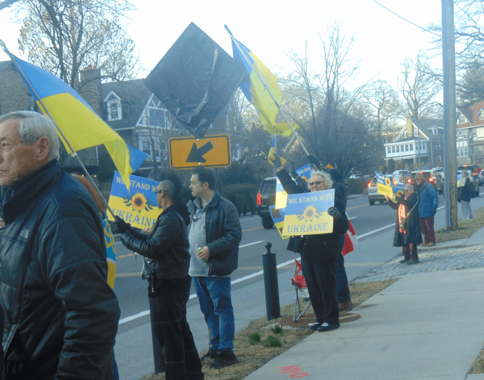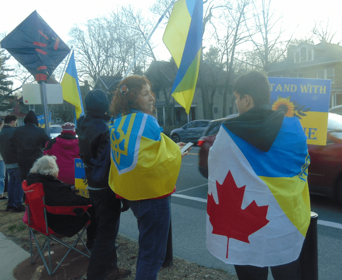 Rally is in Germantown, Philadelphia, PA. They’ve been holding weekly rallies at this location (in front of the Unitarian Society of Germantown church) and will continue until there is a fair and just peace for Ukraine.