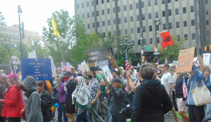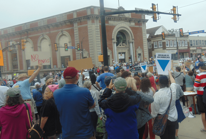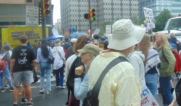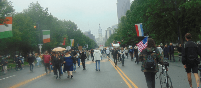 Glenside, about 14 miles North of central Philadelphia, PA. This was one of many satellite protests that occurred before the big one in the city.