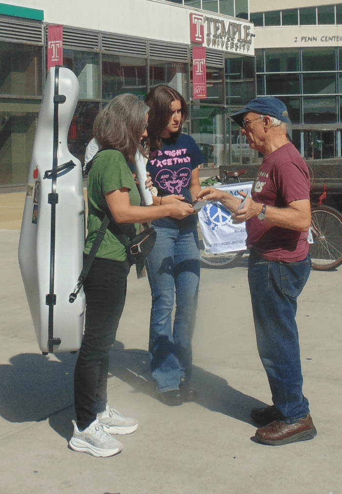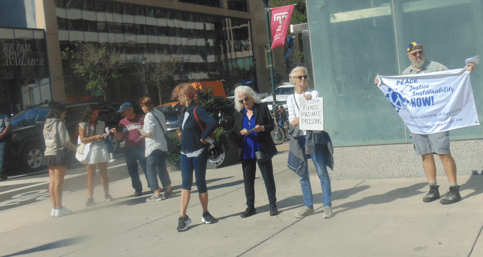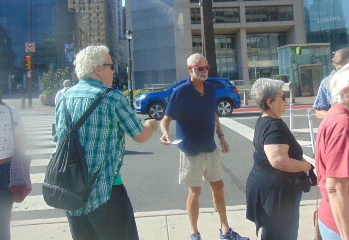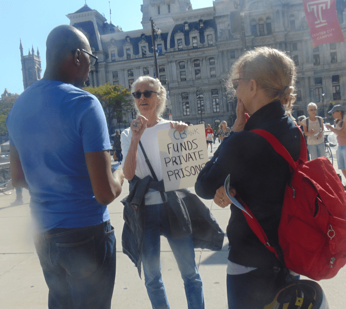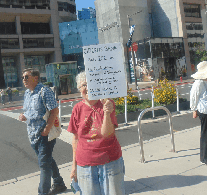 I told folks at the Indivisible-Peace, Justice, Sustainability NOW event that I was looking to get “action photos,” photos like the above that showed us interacting with citizens as we passed out information on Citizens Bank and how they were collaborating with ICE.