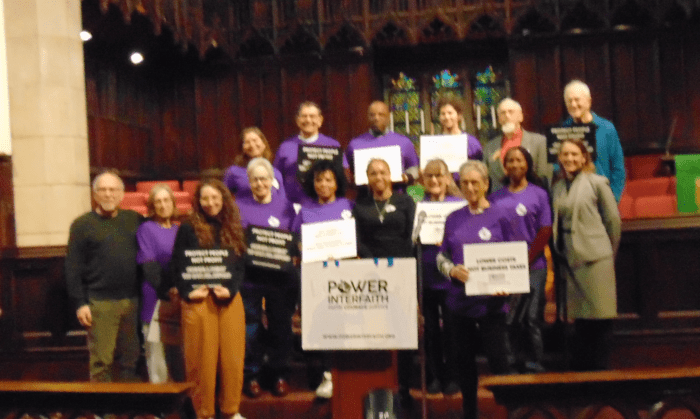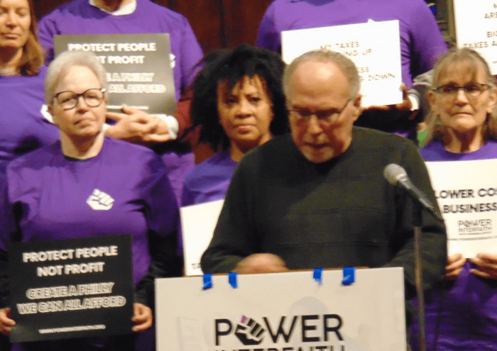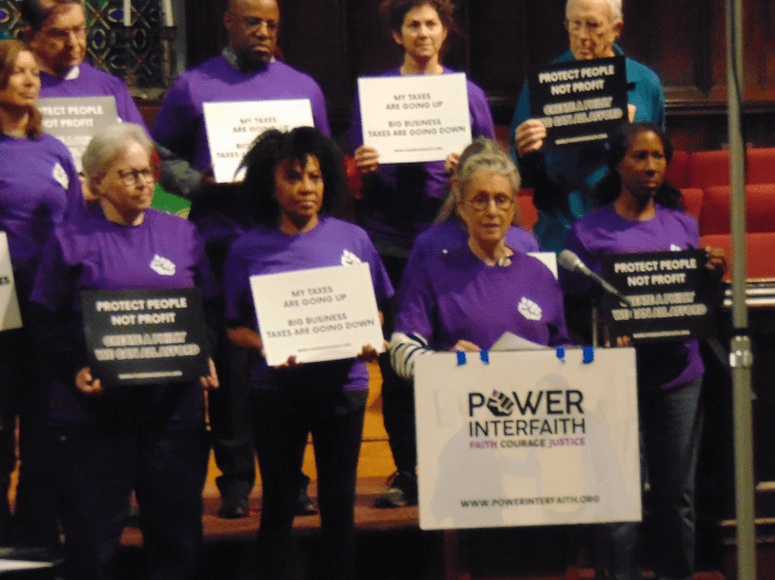 “It will cost the city $2.8 billion over 12 years,” said Sharon Weinman, a member of Mishkan Shalom Reconstructionist Synagogue, referring to an analysis of recent business tax cuts following the City Council’s $6.8 billion budget approval.
