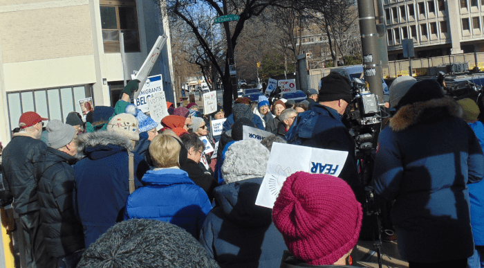 I was pretty far back, so I couldn’t see much, but we had a bit of civil disobedience where our people attempted to deliver a letter to ICE. Apparently, they took it, but I was part of the crowd that chanted “Take the letter!”