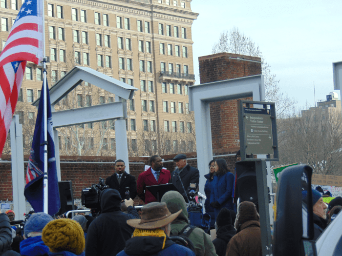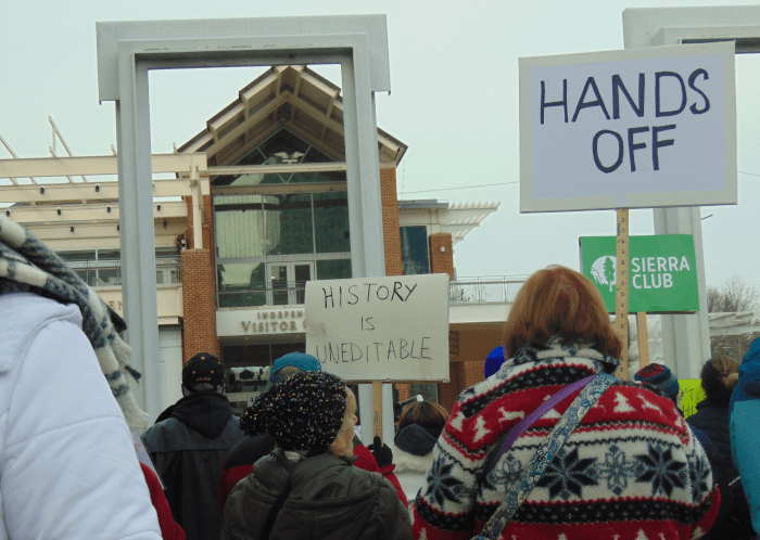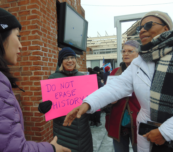 The Trump Administration decided they didn’t like the President’s House and what it showed about American history. They could very easily have started a conversation about what the history of the era was and how the presidents of that time dealt with the issue. They decided instead to simply remove all of the explanatory texts and illustrations, to be replaced with scrubbed and sanitized texts and pictures. Here’s a People’s World piece on the issue. I did a quickie summary of the issue as it was discussed in court. Here’s a piece on this particular rally. Essentially, Trump signed an Executive Order last March that said monuments would avoid anything that works to “disparage Americans past” and that instead celebrates “the greatness of the achievements and progress” that the American people have made. In other words, he wants a “Yippee America” point of view instead of the complex truth.