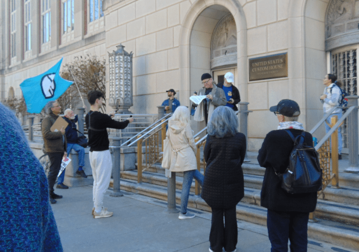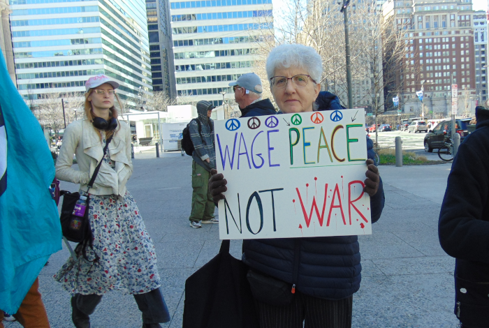 So I did finally make it to the big, central Philly event, but as we said in the Navy “Proper prior planning prevents poor performance” and well, my planning was less than ideal, so I made it, but by the time I got to within sight of the stage, people were heading back in droves, so I got video of the returning crowd, from which we can get an idea of the demographics of who attended and the signs they were carrying.